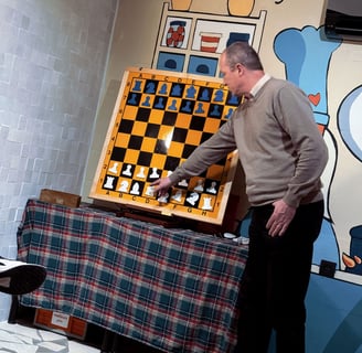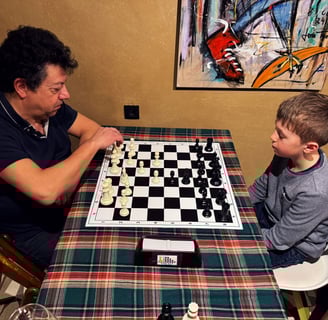 Ensuite, Marcel a montré de courtes parties d’échecs dont le mat de Legal (partie disputée en 1750 à Paris par Kermur de Legal et Saint-Brie contre un amateur). Il a également expliqué comment effectuer le roque et la prise « en passant ».